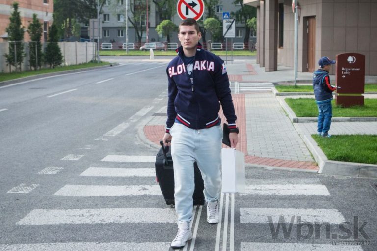 Slovenský hokejový reprezentant Dávid Skokan počas odchodu slovenskej hokejovej reprezentácie na MS v ľadovom hokeji v Minsku. Bratislava, 7. máj 2014. Foto: SITA/Jozef Jakubčo