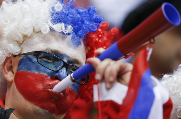 Ruský fanúšik počas nedeľňajšieho zápasu 'zbornej' proti Slovensku na olympijskom turnaji v Soči. Foto: SITA/AP