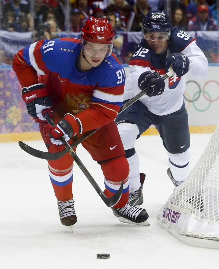 Ruský útočník Iľja Kovaľčuk počas zápasu proti Slovensku na olympijskom turnaji v Soči.. Foto: SITA/AP