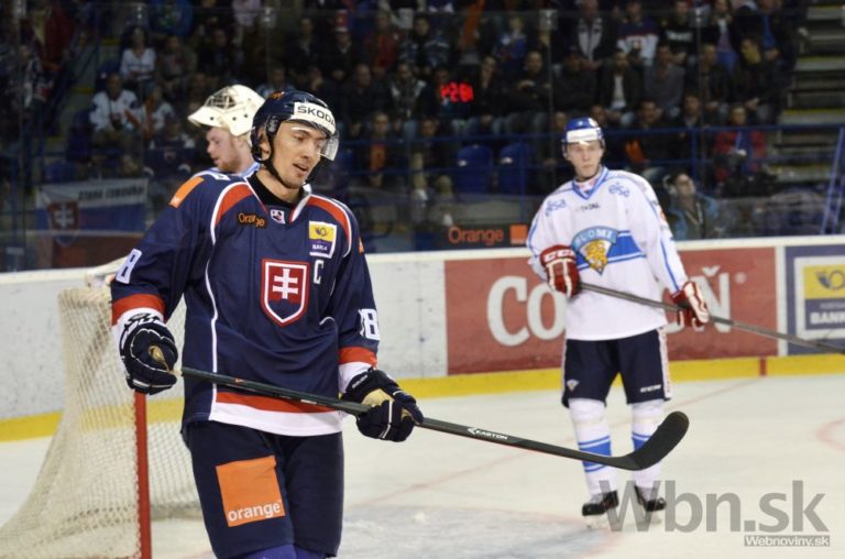 Hráč Slovenska Miroslav Šatan (v popredí) počas prípravného zápasu v rámci Euro Hockey Challenge Slovensko - Fínsko . Poprad, 26. apríl 2014. Foto: SITA/Radoslav Maťaš