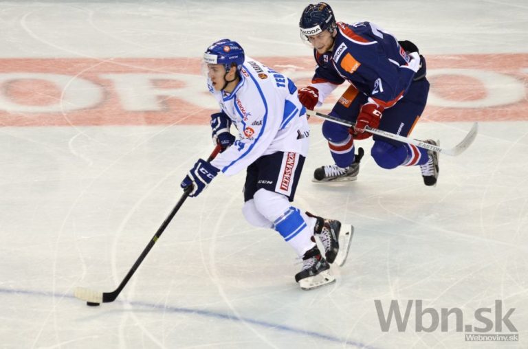 Zľava: Hráč Fínska Teuvo Teräväinen a hráč Slovenska Radoslav Tybor počas prípravného zápasu v rámci Euro Hockey Challenge Slovensko - Fínsko . Poprad, 26. apríl 2014. Foto: SITA/Radoslav Maťaš