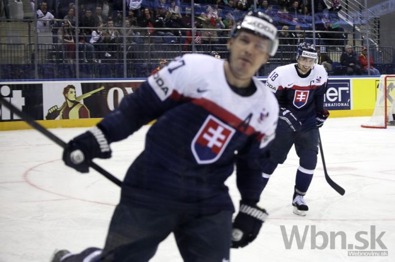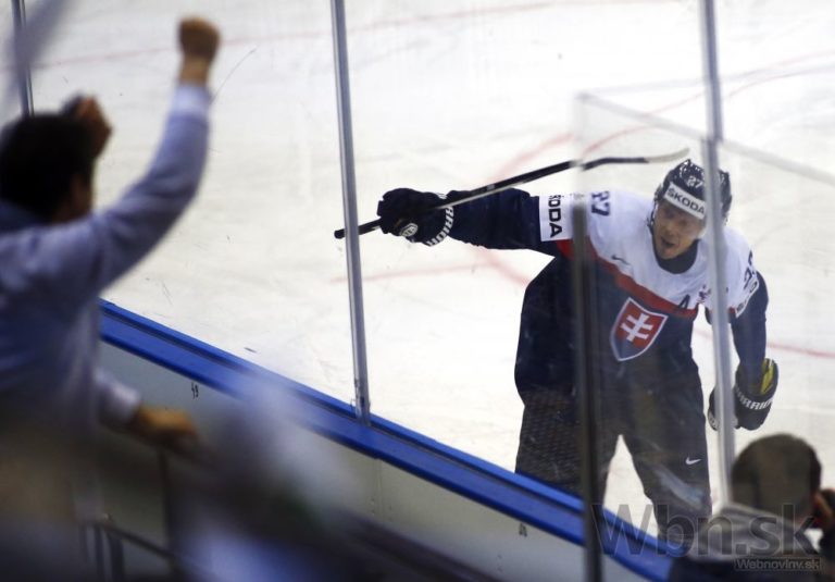 Radosť slovenského útočníka Ladislava Nagya po jednom z dvoch gólov, ktoré strelil Nórom v stredajšom zápase na MS v hokeji. Foto: SITA/AP