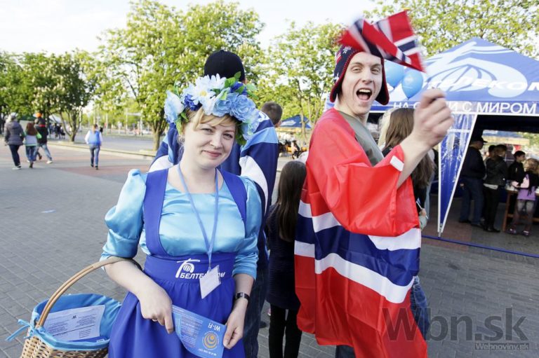 Atmosféra pred Čižovka Arenou pred zápasom Slovensko - Nórsko základnej A-skupiny majstrovstiev sveta v ľadovom hokeji 2014 v Minsku. Bielorusko, Minsk, 14. máj 2014. Foto: SITA/Ján Viazanička