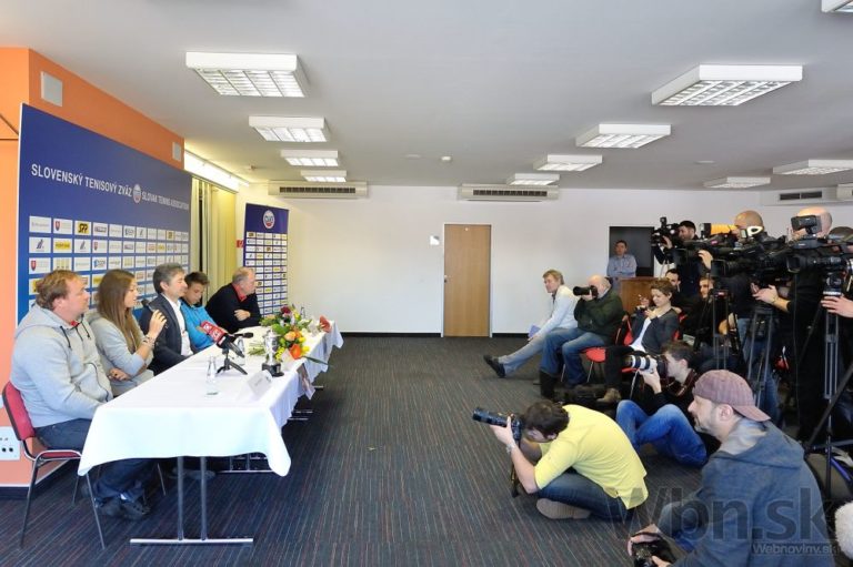 Tenistka Tereza Mihalíková (v strede) počas tlačovej konferencie Slovenského tenisového zväzu (STZ) s juniormi a ich trénermi po návrate z Australian Open. Bratislava, 2. február 2015. Foto: SITA/Robert Tappert