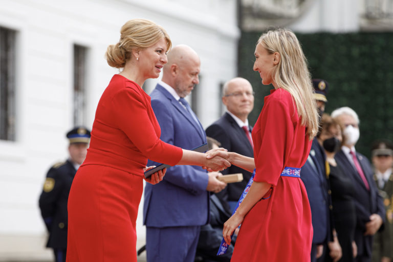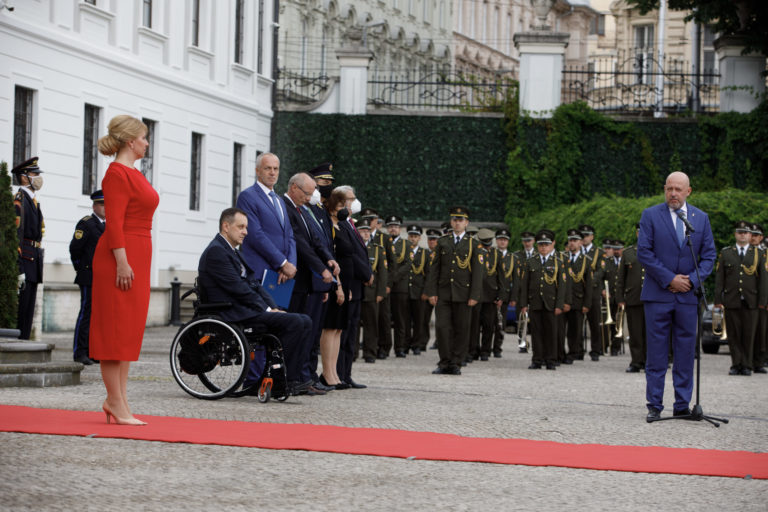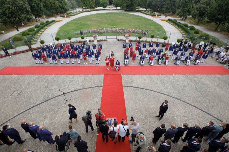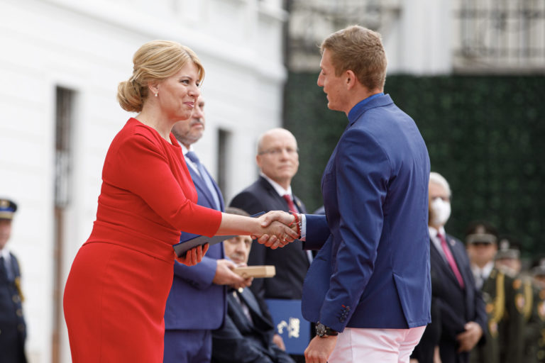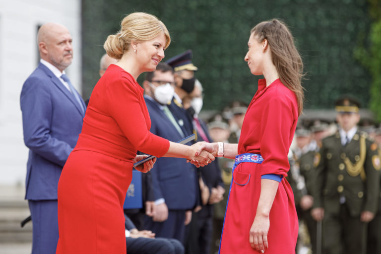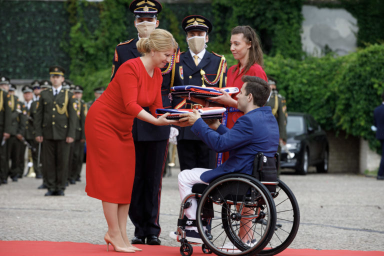 Slávnostný sľub členov slovenskej výpravy na Hry XXXII. olympiády a na paralympijské hry v Tokiu do rúk prezidentky SR v záhrade Prezidentského paláca. Bratislava, 14. júl 2021. Foto: SITA/Branislav Bibel