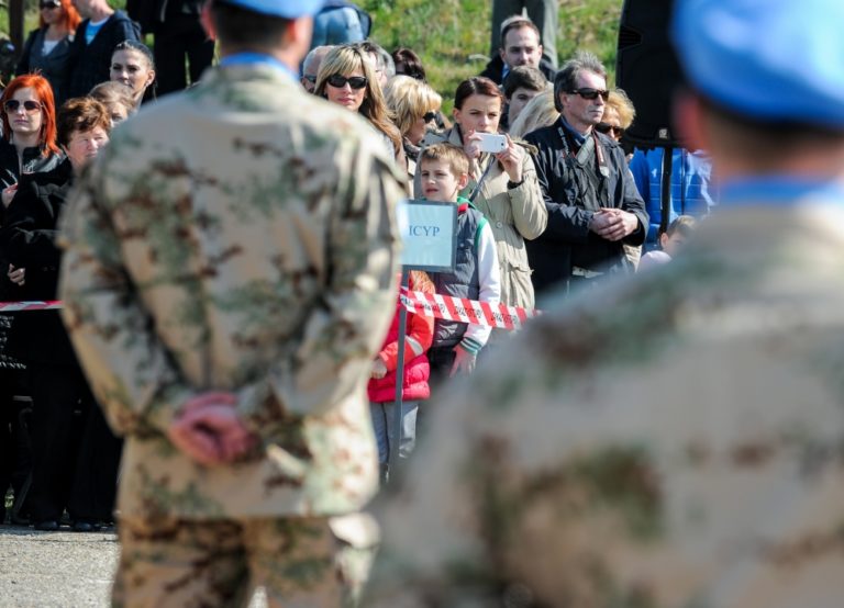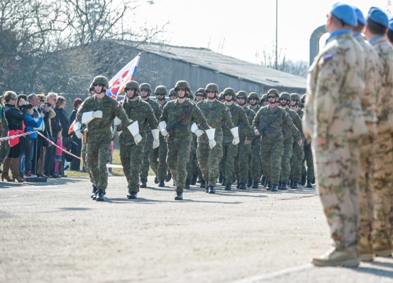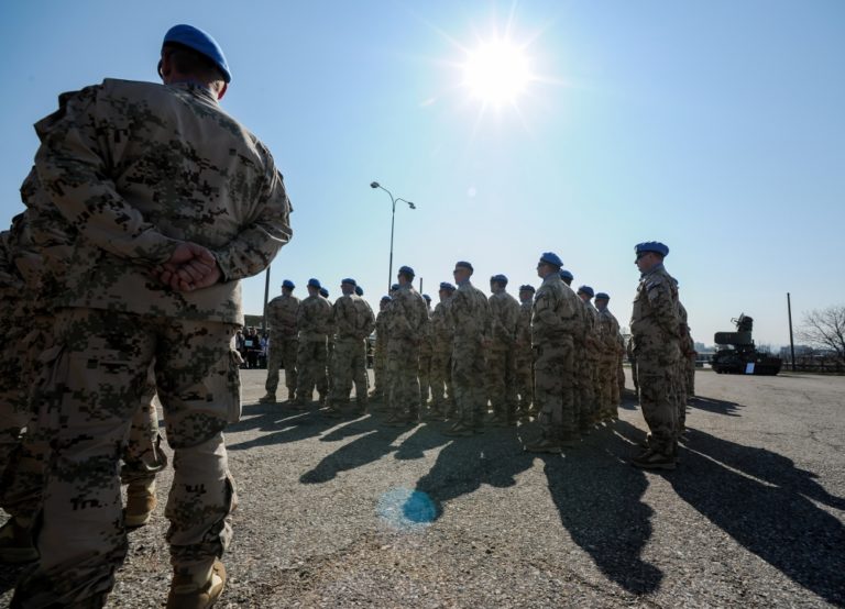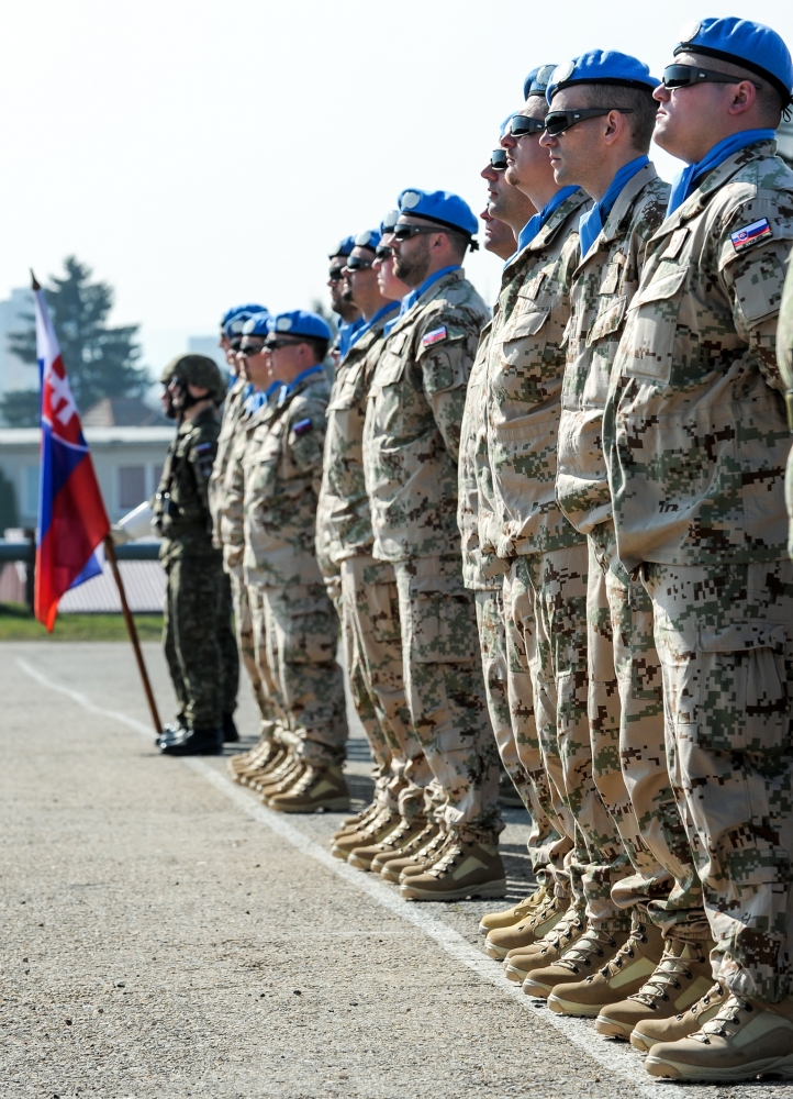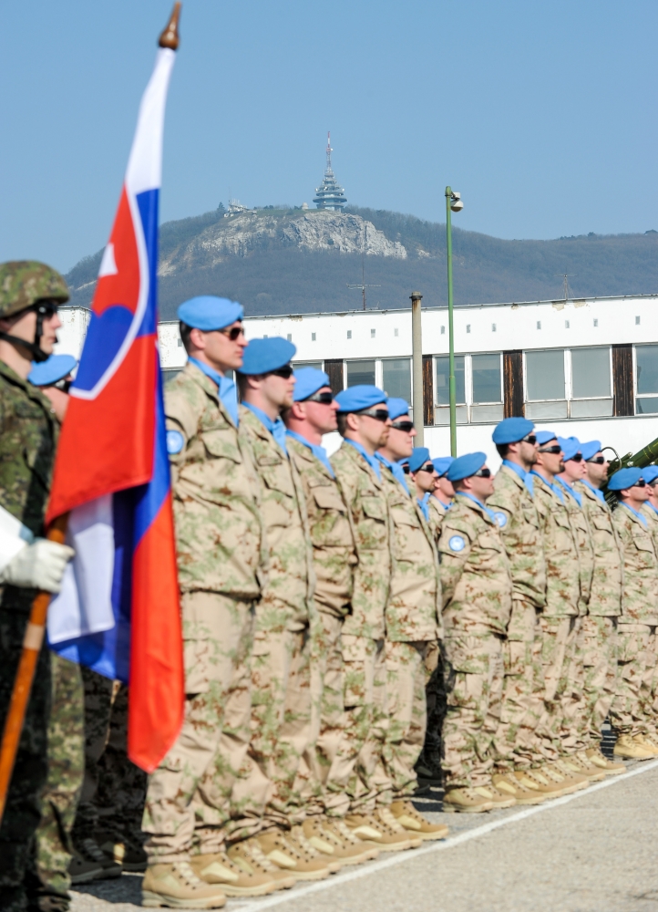 Pod Zoborom v Nitre sa uskutočnila slávnostná rozlúčka s vojakmi odchádzajúcimi do mierovej misie OSN UNFICYP na Cypre. Nitra, 14. marec 2014.