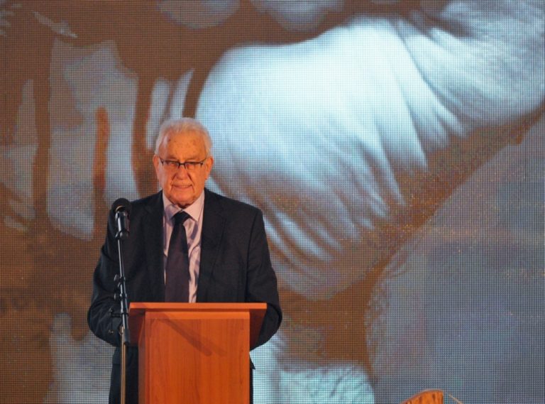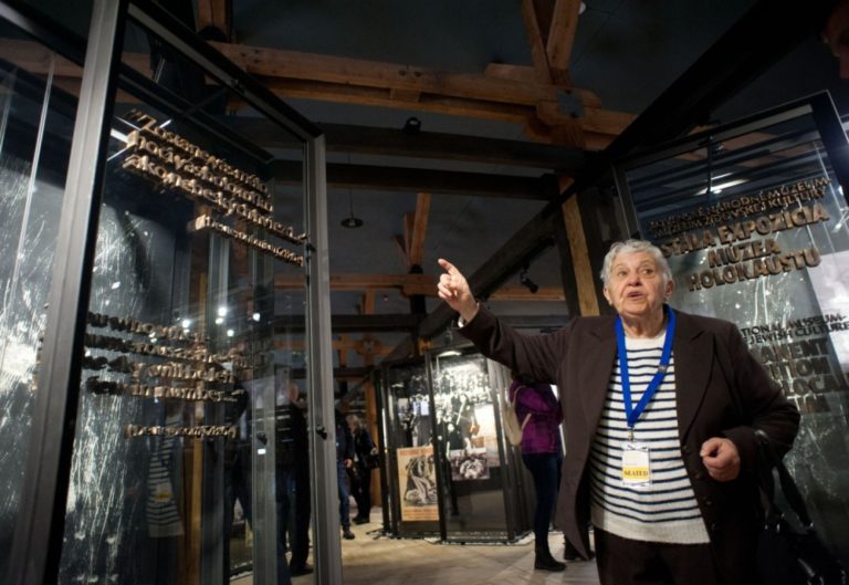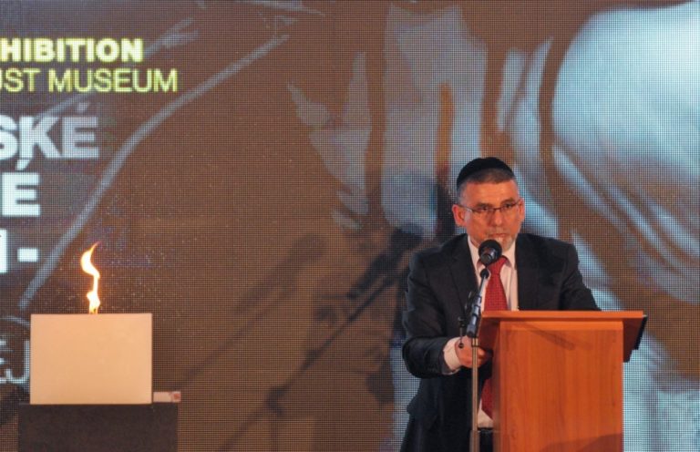 Zástupca preživších Naftali Fürst počas prejavu na slávnostnom otvorení stálej expozície Múzea holokaustu pri príležitosti Medzinárodného dňa pamiatky obetí holokaustu (27. január). Sereď, 26. január 2016. Foto: SITA/Martin Medňanský