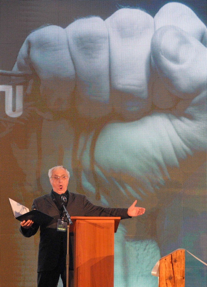Podpredseda izraelského Knessetu Jicchak Vaknin počas prejavu na slávnostnom otvorení stálej expozície Múzea holokaustu pri príležitosti Medzinárodného dňa pamiatky obetí holokaustu (27. január). Sereď, 26. január 2016. Foto: SITA/Martin Medňanský