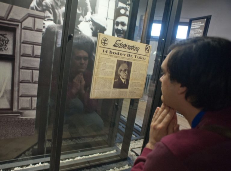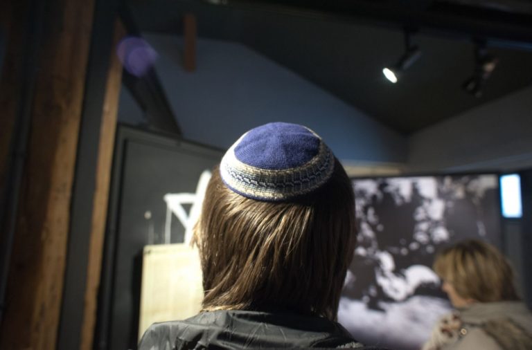 Návštevník počas prehliadky stálej expozície Múzea holokaustu, ktoré otvorili pri príležitosti Medzinárodného dňa pamiatky obetí holokaustu (27. január). Expozíciu zriadilo Slovenské národné múzeum – Múzeum židovskej kultúry v spolupráci s Ministerstvom kultúry SR v priestoroch bývalého pracovného a koncentračného tábora na Kasárenskej ulici v Seredi. Sereď, 26. január 2016. Foto: SITA/Martin Medňanský