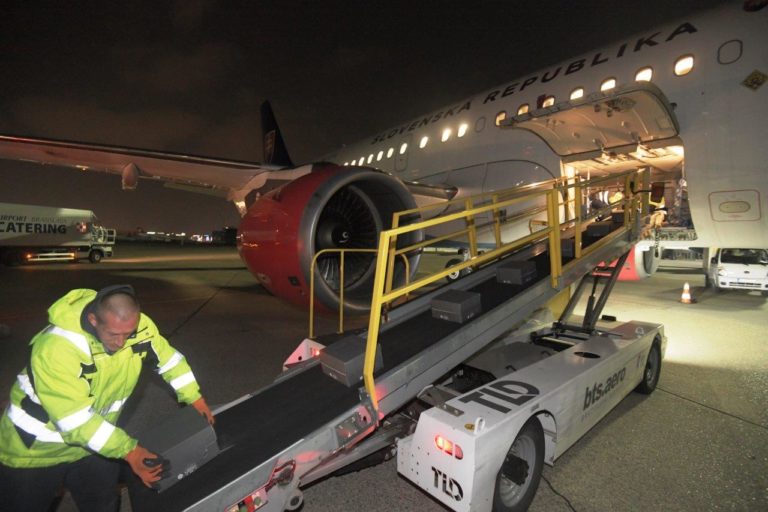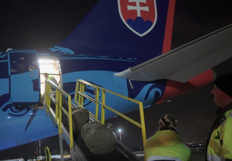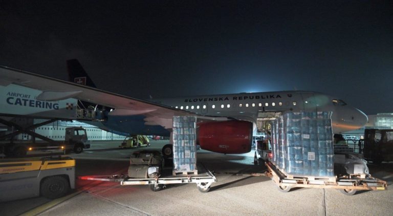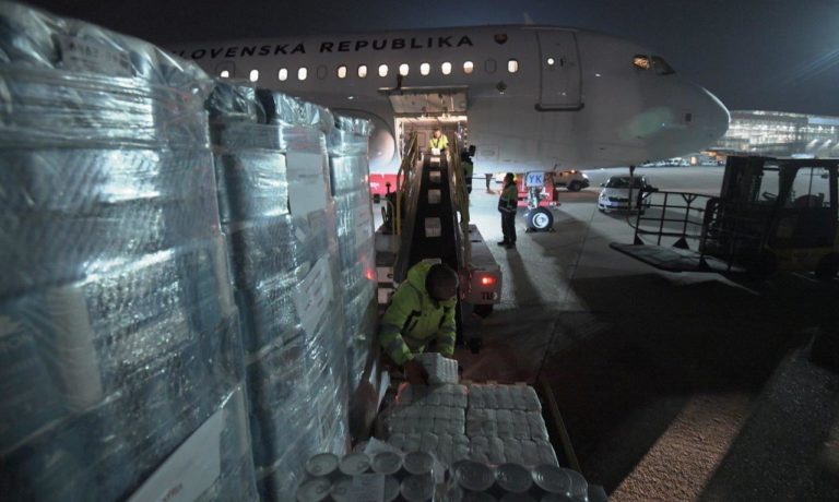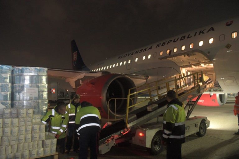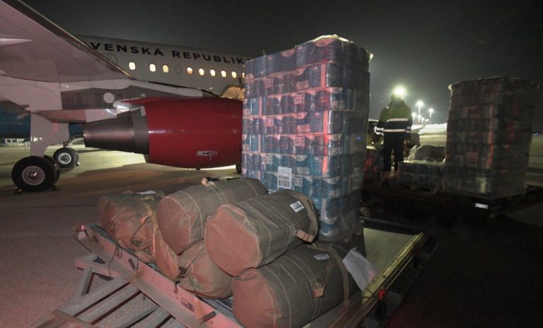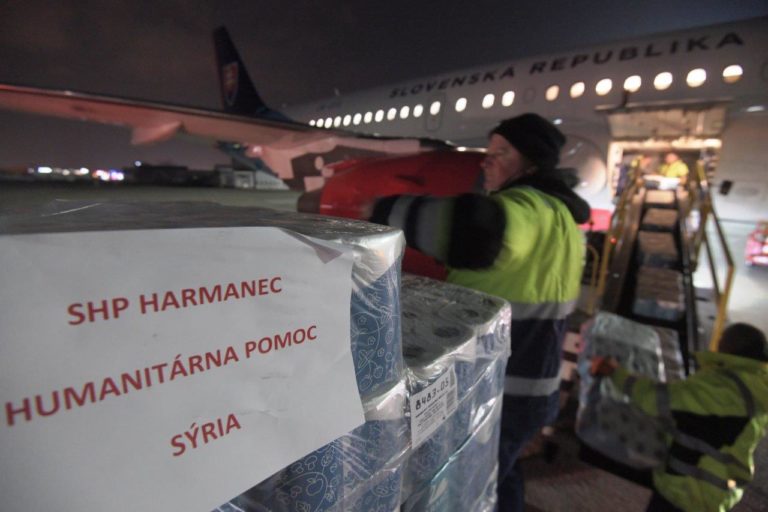 Letecký útvar Ministerstva vnútra (MV) SR dnes prepravil do Sýrie ďalšiu dávku humanitárnej pomoci. Ide najmä o trvanlivé potraviny, oblečenie a hygienické potreby. Foto: SITA/Ministerstvo vnútra SR.