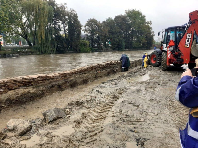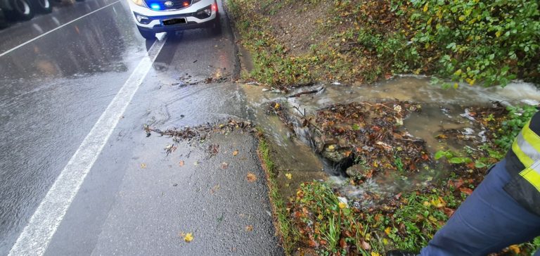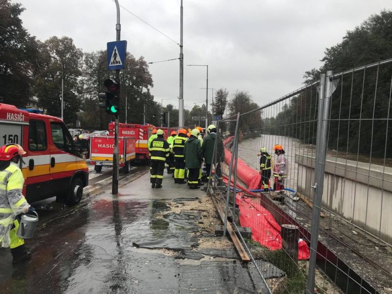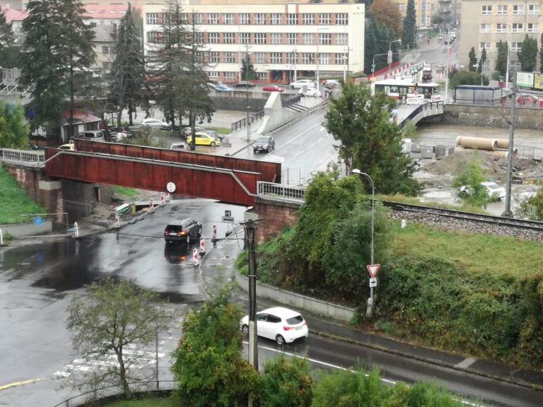 V Banskej Bystrici museli z dôvodu nepriaznivého počasia uzavrieť most na ulici 9. mája. 14. október 2020. Foto: SITA/KR PZ Banská Bystrica