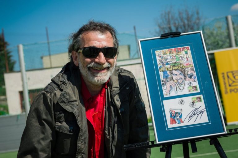 Autor grafickej predlohy poštovej známky Petra Sagana Jozef Gertli, známy ako karikaturista Danglár. Foto: SITA/Milo Fabian