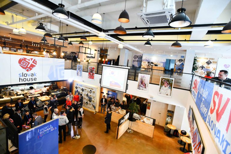 Pohľad do interiéru Slovenského domu počas slávnostného otvorenia na XXIII. zimných olympijských hrách (ZOH) 2018 v Pjongčangu. Južná Kórea, Gangneung, 9. február 2018. Foto: SITA/Martin Medňanský.