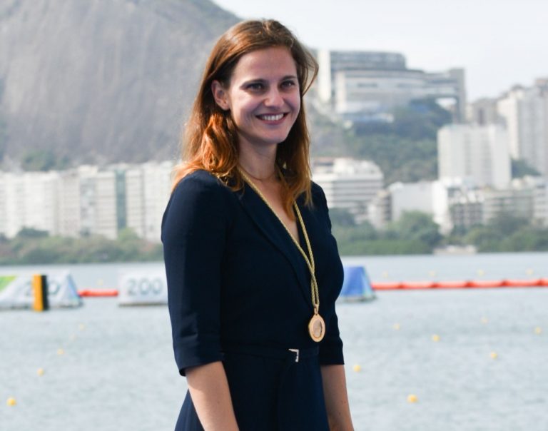 Členka MOV Danka Barteková počas medailového ceremoniálu v kategórii K4 mužov na 1000 m. Rio de Janeiro, 20. august 2016. Foto: SITA/Martin Medňanský