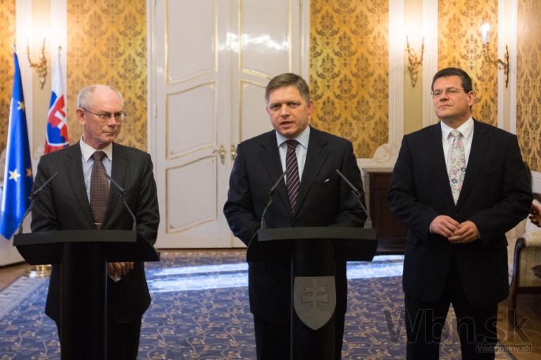 Predseda Európskej rady Herman Van Rompuy, ktorý je na návšteve Slovenska, v stredu poďakoval Slovensku za to, že sa mu podarilo zabezpečiť reverzný tok plynu na Ukrajinu. Foto: SITA/Jozef Jakubčo