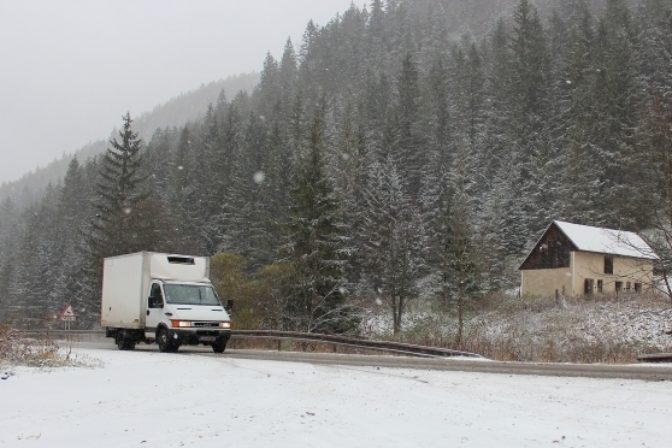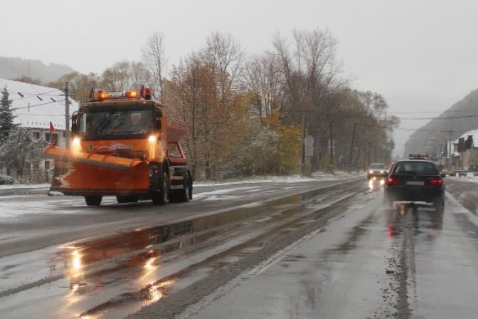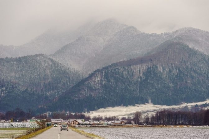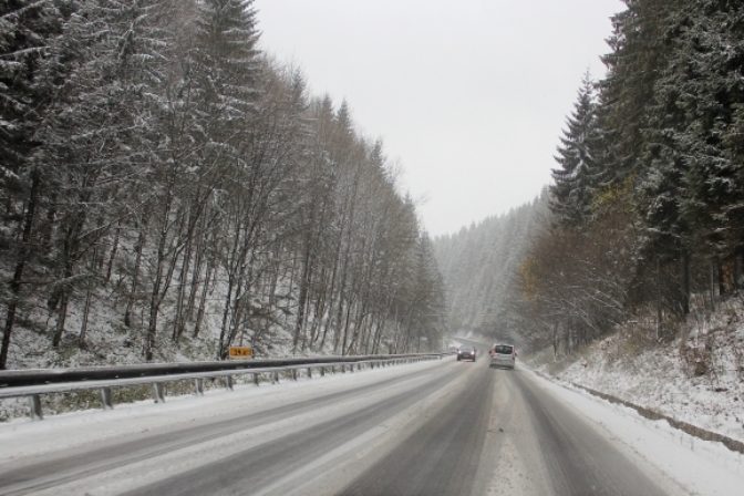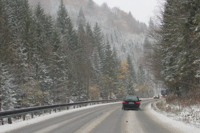 Zasnežené ráno v Kežmarku. Pohľad na situáciu na cestách v meste. Kežmarok, 27. november 2018. Foto: SITA/Radoslav Maťaš