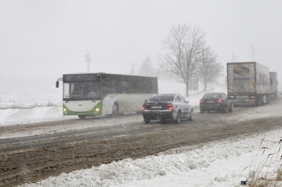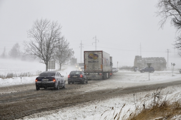 Dopravná situácia na ceste medzi Jánovcami a Popradom pred mestom Poprad. Poprad, 6. december 2013. Foto: SITA/Radoslav Maťaš