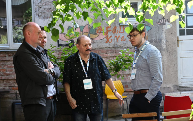 Delegáti pred snemom hnutia Progresívne Slovensko v Tabačke Kulturfabrik v Košiciach. Košice, 4. máj 2024. Foto: SITA/Viktor Zamborský
