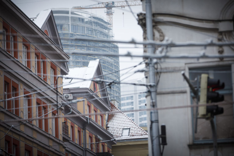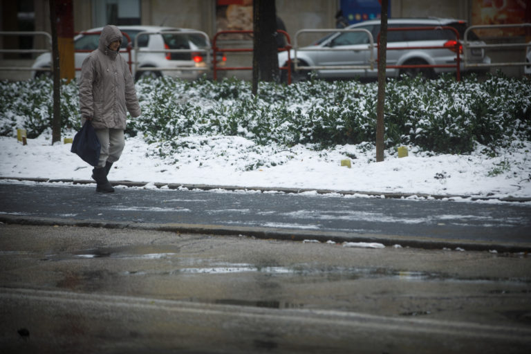 Zasnežené ráno v MČ Staré Mesto počas prvého sezónneho sneženia v Bratislave. Bratislava, 2. december 2019. Foto: SITA/Branislav Bibel.