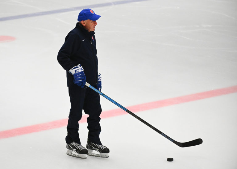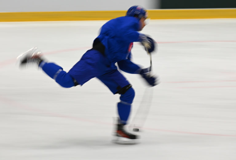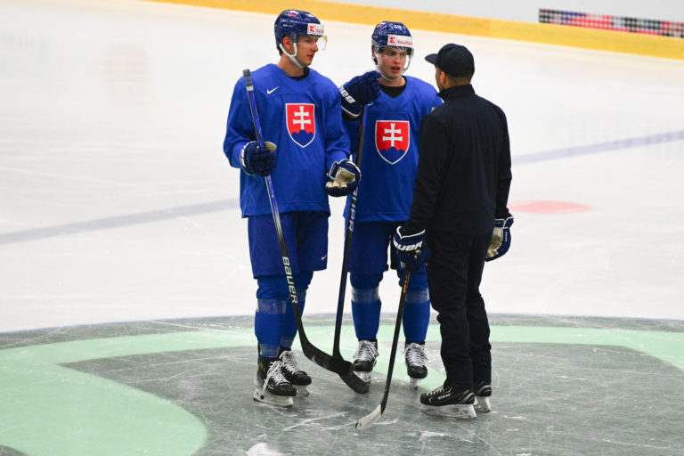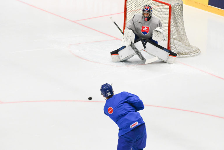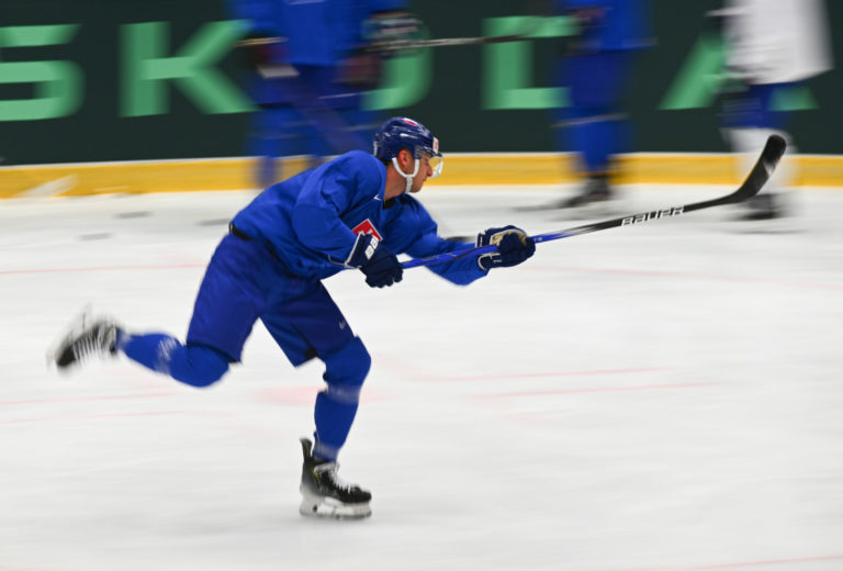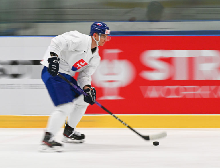 Momentka počas oficiálneho tréningu tímu Slovenska v rámci majstrovstiev sveta v ľadovom hokeji 2024 v Českej republike. Ostrava, Česká republika, 11. máj 2024. Foto: SITA/Martin Medňanský.