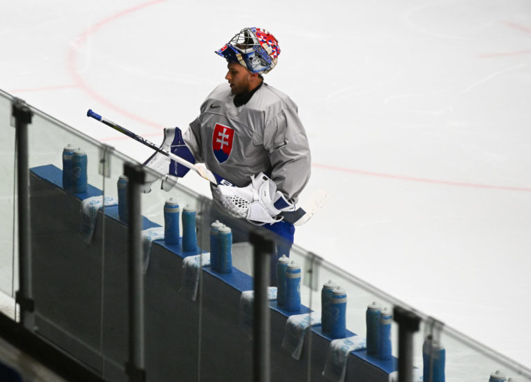 Slovenský hokejista Mário Grman počas oficiálneho tréningu tímu Slovenska v rámci majstrovstiev sveta v ľadovom hokeji 2024 v Českej republike. Ostrava, Česká republika, 11. máj 2024. Foto: SITA/Martin Medňanský.