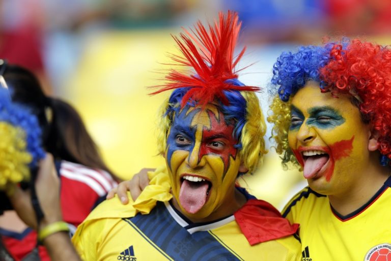 Fanúšikovia Kolumbie počas sobotňajšieho osemfinálového zápasu na svetovom šampionáte v Brazílii. Foto: SITA/AP