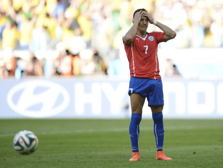 Smutný Čiľan Alexis Sanchez po tom, čo v penaltovom rozstrele neprekonal brazílskeho brankára počas sobotňajšieho osemfinálového zápasu na majstrovstvách sveta. Foto: SITA/AP
