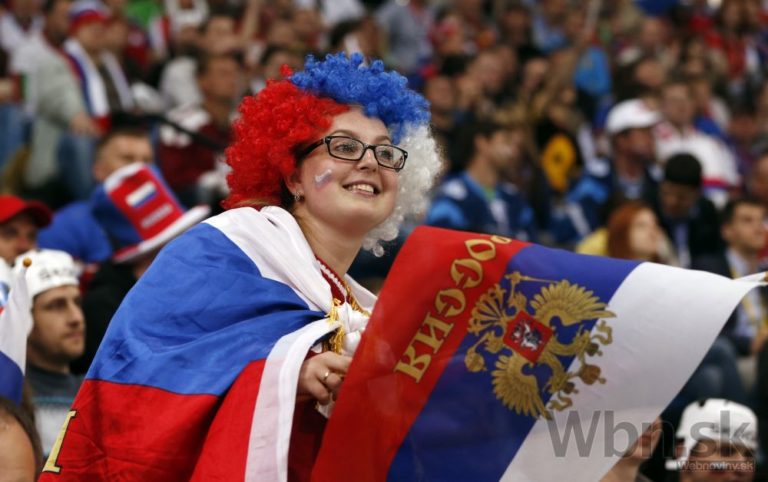 Ruská fanúšička počas sobotňajšieho zápasu 'zbornej' proti Lotyšsko na MS v hokeji. Foto: SITA/AP