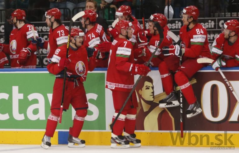 Radosť bieloruských hokejistov po góle v sieti Nemecka počas sobotňajšieho zápasu na MS v hokeji. Foto: SITA/AP