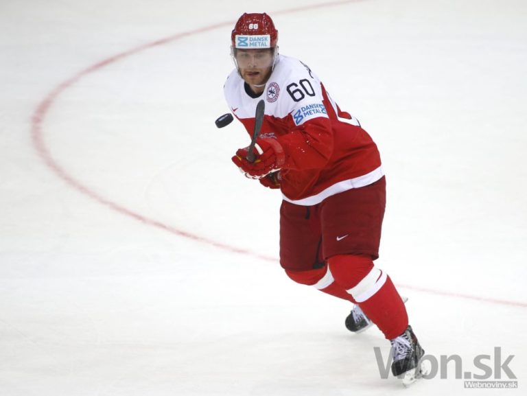 Dánsky útočník Mads Christensen si spracováva puk počas sobotňajšieho zápasu na MS v hokeji. Foto: SITA/AP