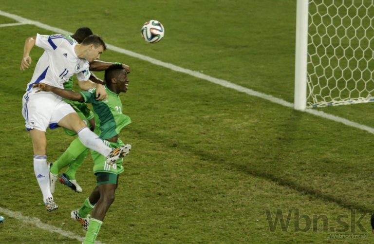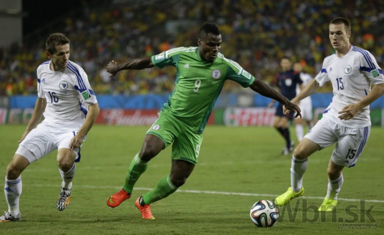 Nigérijčan Emmanuel Emenike strieľa na bránku Bosny a Hercegoviny počas sobotňajšieho zápasu F-skupiny na svetovom šampionáte v Brazílii. Foto: SITA/AP