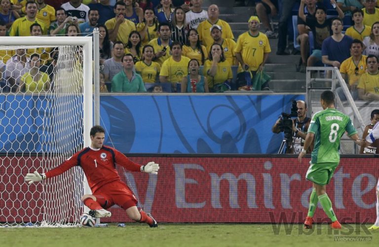 Nigérijčan Peter Odemwingie prekonáva brankára Bosny a Hercegoviny Asmira Begovica počas sobotňajšieho zápasu F-skupiny na svetovom šampionáte v Brazílii. Foto: SITA/AP