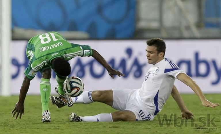 Futbalista Bosny a Hercegoviny Senad Lulic v súboji s Nigérijčanom Michaelom Babatundem počas sobotňajšieho zápasu F-skupiny na svetovom šampionáte v Brazílii. Foto: SITA/AP