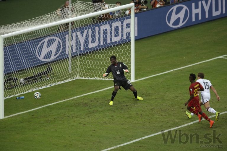 Ghanský brankár Fatawu Dauda sa smutne pozerá ako loptu z kopačky Nemca Maria Götzeho smeruje do jeho siete počas sobotňajšieho zápasu G-skupiny na svetovom šampionáte v Brazílii. Foto: SITA/AP