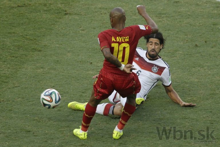 Ghanský futbalista Andre Ayew v súboji s Nemcom Sami Khedirom počas sobotňajšieho zápasu G-skupiny na svetovom šampionáte v Brazílii. Foto: SITA/AP