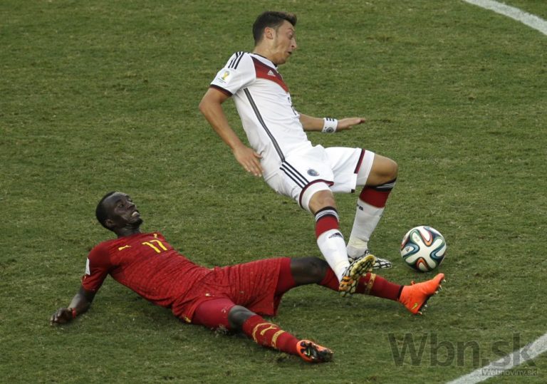 Ghanský futbalista Mohammed Rabiu fauluje Nemca Mesuta Özila počas sobotňajšieho zápasu G-skupiny na svetovom šampionáte v Brazílii. Foto: SITA/AP