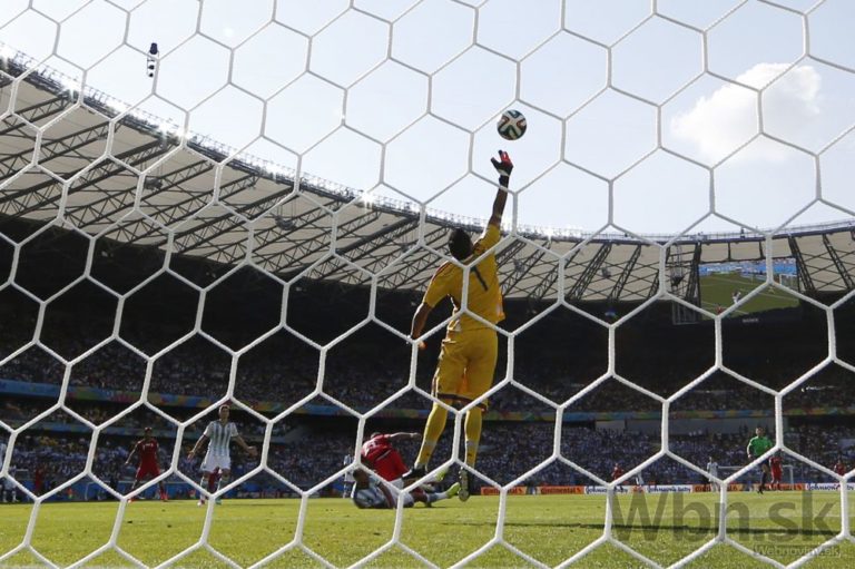 Argentínsky brankár Sergio Romero vyráža loptu po strele jedného z iránskych futbalistov počas sobotňajšieho zápasu F-skupiny na svetovom šampionáte v Brazílii. Foto: SITA/AP