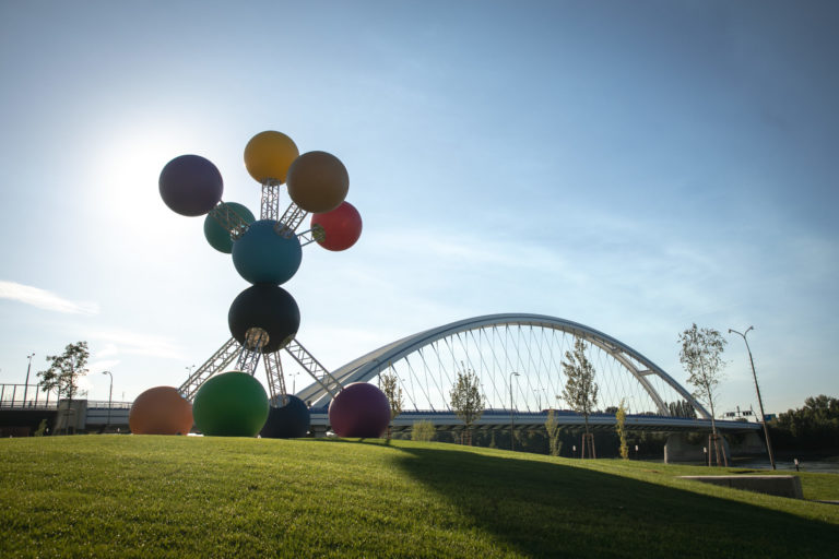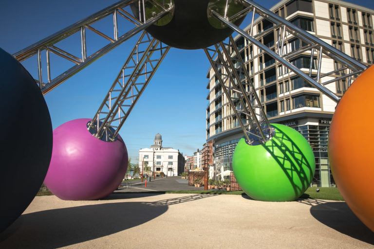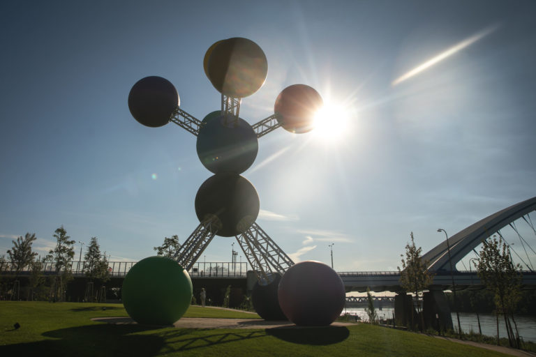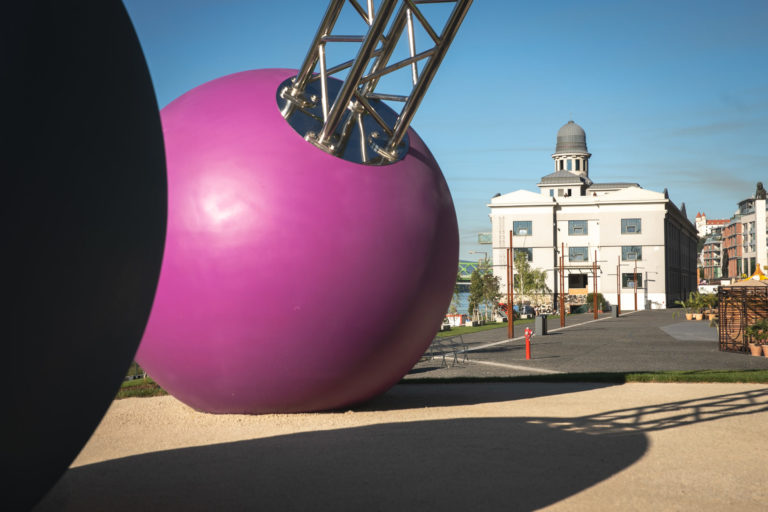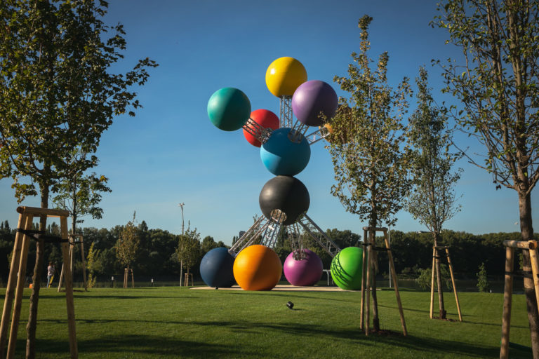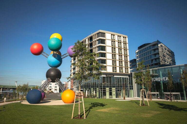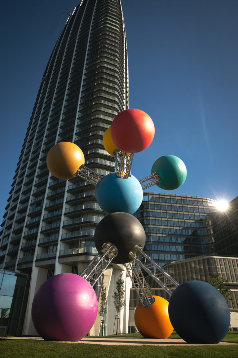 Socha Octahedral Body na predĺženej dunajskej promenáde v Eurovea City, ktorej autormi sú Viktor Frešo, výherca verejnej súťaže za nové vizuálne umelecké dielo a barcelonská architektka a urbanistka Beth Galí, ktorá je autorkou koncepcie verejných priestorov v Eurovea City. Bratislava, 20. september 2023. Foto: SITA/Diana Černak.