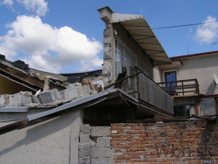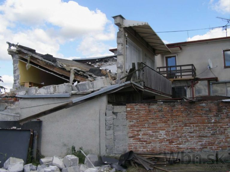 Kus rodinného domu sa zrútil na Vrbovskej ceste v Piešťanoch. Bratislava, 29. máj 2014.