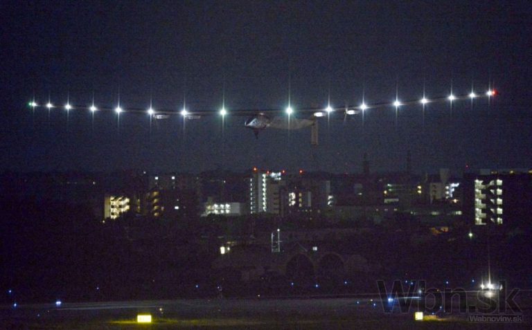 Solar Impulse 2 vzlietlo z japonského letiska pri meste Nagoja po takmer mesačnej nútenej prestávke a pokračuje na Havaj, do ďalšej destinácie vo svojej ceste okolo sveta. (Japonsko, Nagoja, 29. jún 2015) Foto: SITA/AP