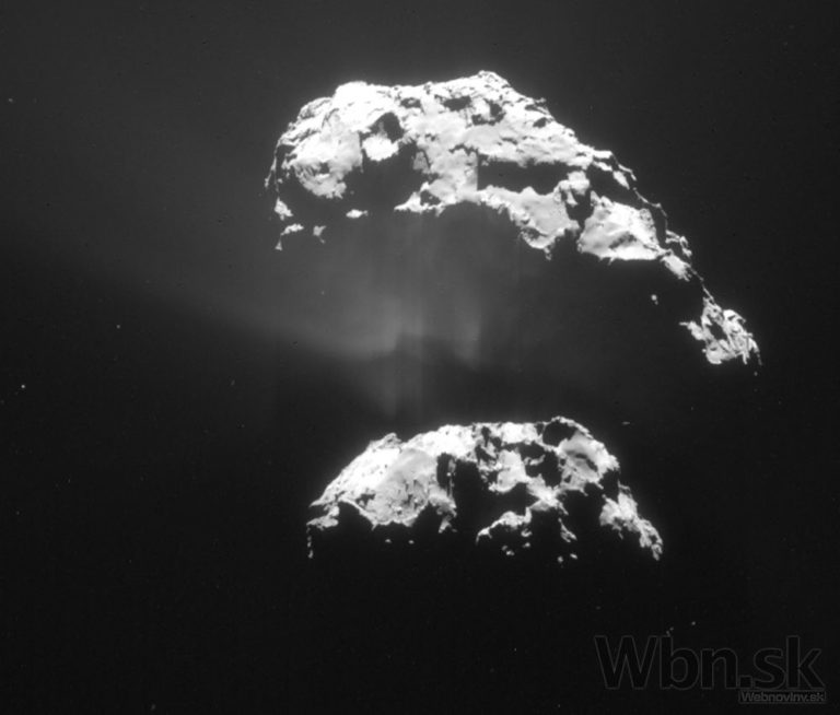 Tím vedcov na čele s Matteom Massironim z Padovskej univerzity zistil, že kométa 67P/Churyumov-Gerasimenko vznikla kolíziou a následným spojením dvoch samostatných komét v ranom období Slnečnej sústavy. K zrážke muselo dôjsť pri veľmi nízkej rýchlosti, inak by sa kométy navzájom zničili. Foto: SITA/AP
