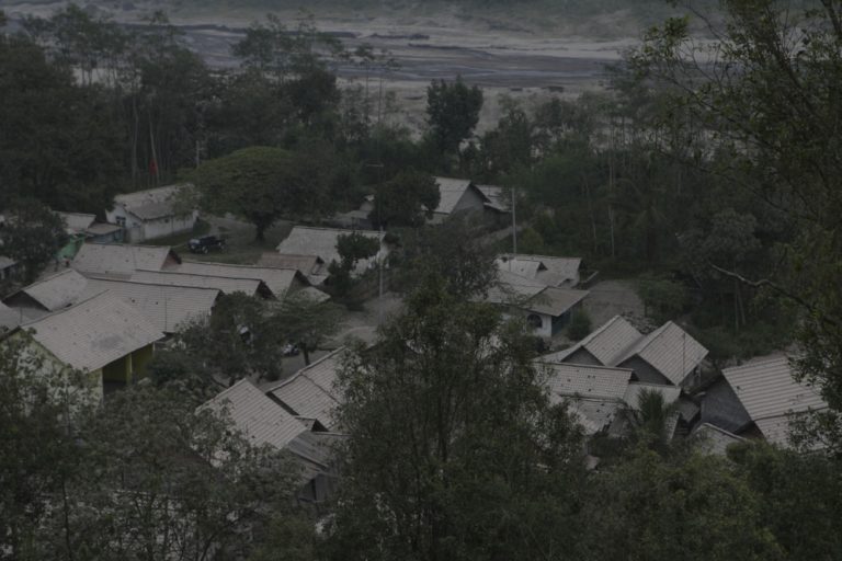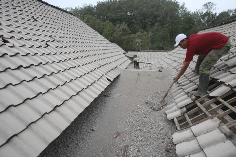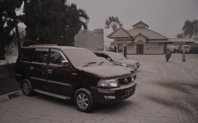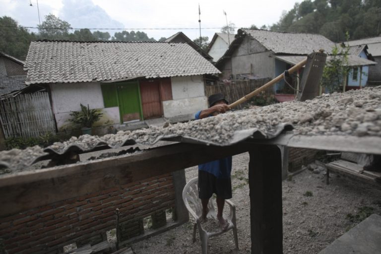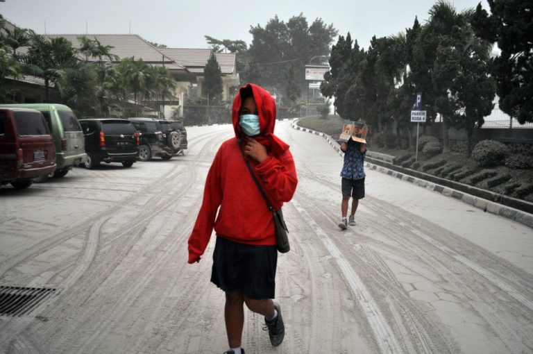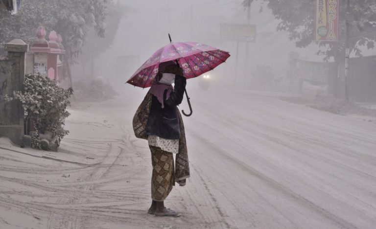Pred sopkou utekalo 200-tisíc ľudí. Na cestách zostala po výbuchu indonézskej sopky Kelud niekoľkocentimetrová vrstva popola. Foto: SITA/AP