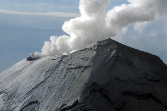 Popol, ktorý chrlí mexická sopka Popokatépetl, ohrozuje leteckú dopravu nad Mexikom. Medzinárodné letisko muselo zrušiť viacero letov. Úrady zvýšili stupeň ohrozenia, ľudí by mali byť pripravení na možnú evakuáciu. Foto: SITA/AP
