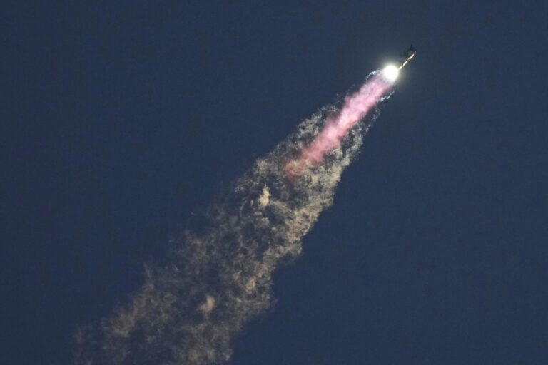 SpaceX's mega rocket Starship lifts off from Starbase for a test flight Sunday, Oct. 13, 2024, in Boca Chica,, Texas. (AP Photo/Eric Gay)