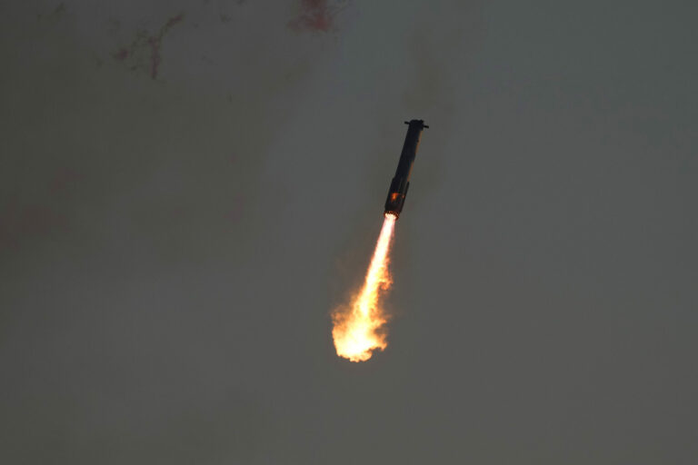 SpaceX's mega rocket Starship makes a test flight Sunday, Oct. 13, 2024, in Boca Chica,, Texas. (AP Photo/Eric Gay)