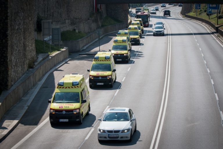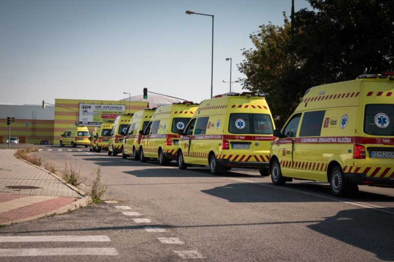 Spanilá jazda sanitiek na počesť záchranárom, ktorí zahynuli pri havárii vrtuľníka 7. septembra. Foto: SITA / Marek Mrviš