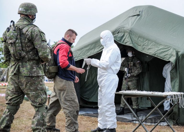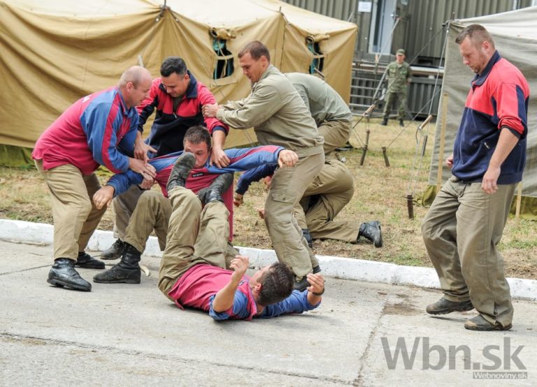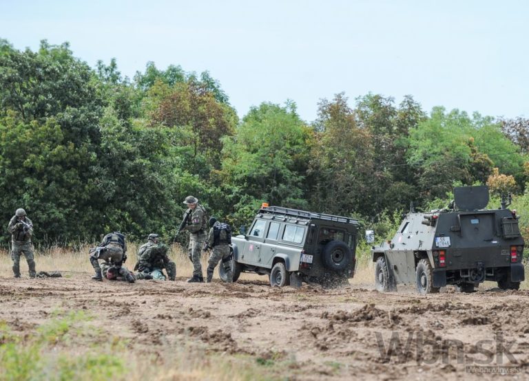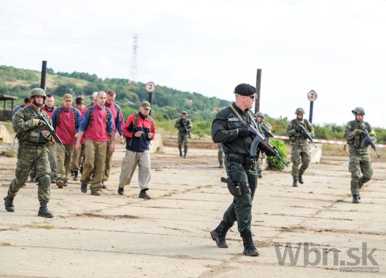 Spoločné cvičenie príslušníkov Ozbrojených síl SR a Ministerstva vnútra SR s názvom Nový horizont 2015 v priestoroch 12. mechanizovaného práporu v Krškanoch v Nitre a vo Výcvikovom priestore Kolíňanský vrch, počas ktorého si účastníci precvičili spoločný postup v prípade prílevu masívnej vlny utečencov z územia susedného štátu. Nitra, 30. júl 2015. Foto: SITA/Martin Havran