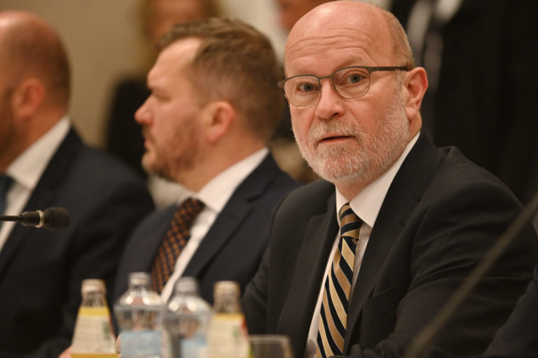 Exminister školstva, vedy, výskumu a športu SR Ján Horecký počas spoločného rokovania členov vlád Slovenskej republiky a Českej republiky v Trenčíne. Trenčín, 3. apríl 2023. Foto: SITA/Tomáš Somr
