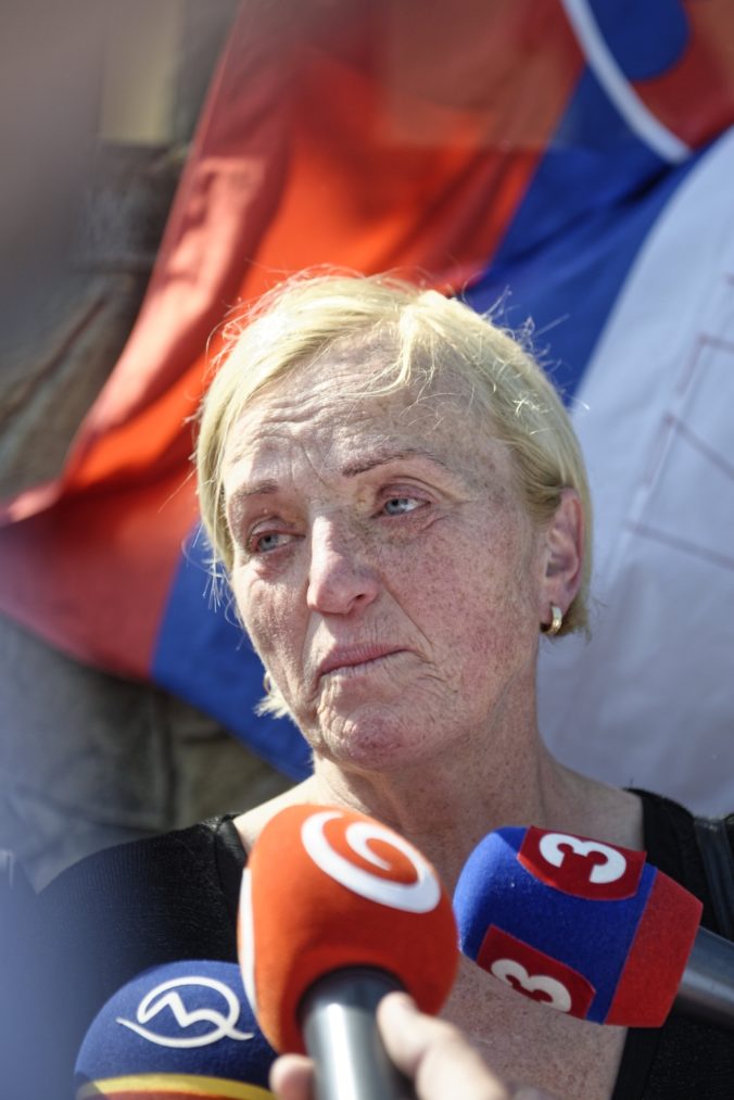 Matka Martiny Kušnírovej Zlatica Kušnírová počas vyjadrenia pre médiá po svätej omši v miestnom kostole Narodenia Panny Márie, ktorá sa konala v rámci spomienky na zavraždených Martinu a Jána v deň ich plánovaného sobáša. Gregorovce, 5. máj 2018. Foto: SITA/Ivan Fleischer