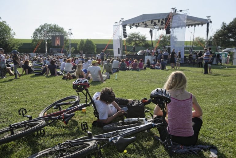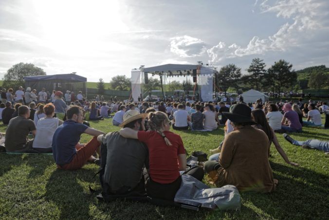 Atmosféra počas spomienkového koncertu pre zavraždených Martinu a Jána na futbalovom ihrisku v Gregorovciach v deň ich plánovaného sobáša. Gregorovce, 5. máj 2018. Foto: SITA/Ivan Fleischer